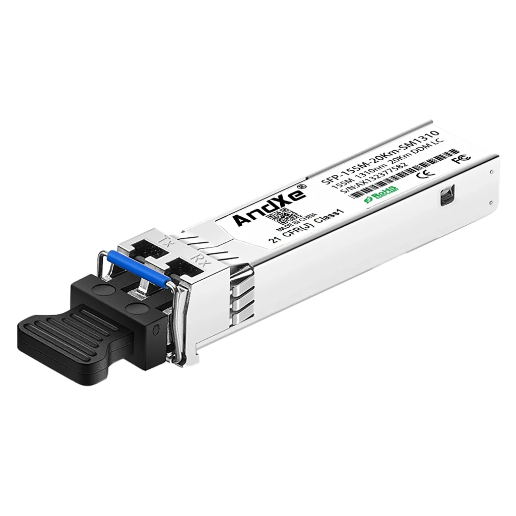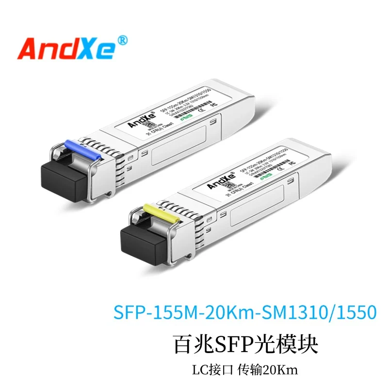 百兆 SFP光模块 SFP-155M-20Km-SM1310 LC接口 传输20Km 产品概述 纤云科技(AndXe)的SFP 1310nm, 155M, 20km, LC, SFP+, 光模块, 光纤模块155M/百兆 SFP光模块, 光模块